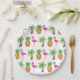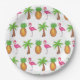 Plato De Papel Isla Tropical Palm Tree Pineapple Flamingo Rosa