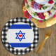 Placas de papel: placas rusticas de fiesta israelí con bandera israelí con el corazón rojo rodeado de un patrón de manta de búfalo blanco y negro - amo a mi país, decoración festiva, patriotas nacionales / hinchas deportivos