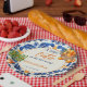 Plato De Papel Italiano Blue Tile Cutie Naranja Citrus Baby Showe