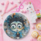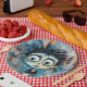 Un personaje caprichoso con ojos de gran tamaño y pelo puntiagudo se representa con una expresión de asombro sentado en una mesa con una taza humeante y una tostadora peculiar. Detrás del personaje, el fondo es animado, lleno de dibujos y garabatos que dan un ambiente caótico y lúdico a la escena.
