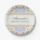 Add a touch of elegance to your celebration with these personalized, Peony Blue Hydrangea Bridal Shower paper plates. Featuring a romantic arrangement of soft blue and white hydrangeas, paired with dusty pink and white peonies, this design will create a beautiful, feminine atmosphere. The flowers are set against a vintage ivory background with delicate beige lace detail, bringing a sense of grace and sophistication to your bridal shower event. Inspired by the timeless, elegant decor and fashion of Nancy Meyers, these paper plates are perfect for a floral bridal shower that feels both classic and modern. A charming addition to your table setting, these paper plates will make your celebration both beautiful and practical.