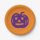 Plato De Papel Jack o lantern morado y naranja de Halloween