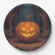 Plato De Papel Jack O' Lantern Resplandeciente En El Bosque
