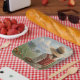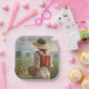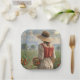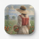 Estos platos de papel de cumpleaños incluyen a una dama cuidando su huerto.