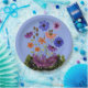 Creación digital de coloridos platos de jardín floral para reuniones.