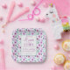 Plato De Papel Jeremías 32:27 con fondo de flores moradas