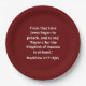 Jesús Empezó A Predicar. Mateo 4:17 Placas de papel para Navidades. Estas placas de papel están inspiradas en la versión del Rey James de Mateo 4:17, "Desde entonces Jesús empezó a predicar y a decir: 'Arrepentíos: para el Reino del Cielo está a mano.'" Estos platos de papel temáticos de los Navidades tienen la Palabra de DIOS como un diseño cristiano basado en textos. Mateo 4:17 en la versión del Rey James está en un texto blanco en la parte delantera de estos platos con Versos de la Biblia. Esta breve cita relacionada con la fe reúne este tradicional tema de color de vacaciones con una estética de fondo rojo burdeos.