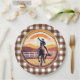 Un Clásico Gingham Marrón Con Una Placa De Papel En El Centro De Rider Ecuestre Olímpico Con Colores De Agua