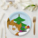 Make holiday parties magical with these Jingle Claws paper plates! Featuring the mischievous Jingle Claws in front of the tree and train town, set against a pale blue background with soft white "snow" beneath the tree, these plates bring festive charm to any holiday gathering.