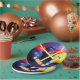 Diversión y bolas y mazos de croquet coloridas, hechos para arriba en un estilo del grunge.
