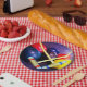 Plato De Papel Juguemos el estilo del Grunge del croquet