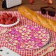 Patrón de la superficie de la jungla en el cuadro combinado de rosa caliente. Derechos de autor de Kelly Hironaka, No. 3 Design