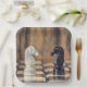 Este diseño de placas de papel de ajedrez incluye clásicos caballeros de ajedrez en un tablero de ajedrez.