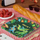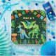 Este lindo acuarela jurásico dinosaurios diseño de la fiesta de cumpleaños de los chicos presenta ilustraciones pintados a mano hechos en crayón acuarela, como un t rex, pteradáctilo, y un dino de la factura de pato montones de decoraciones folclóricas y fiestas en una paleta de colores de verdes, azules y naranjas. Este diseño es adecuado para niños de todas las edades y géneros. En este diseño puede personalizar el nombre y la edad. Vea toda la colección coincidente.
