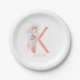 Plato De Papel K Monograma Nombre Pasto de Pampas Orquídeas Blanc