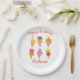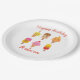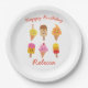 Este es un lindo plato de papel de cumpleaños personalizado para los niños de cumpleaños con 6 conos de helados y paletas graciosos de kawaii sonrientes. Cambiar el texto usando el botón de personalización