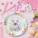 Un lindo oso koala sentado en un chica de flores rosadas personalizado es un plato de papel higiénico chica.