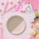 Plato De Papel Kraft y el pastel del rosa sumergieron la placa de