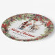 Los clásicos platos de Navidad con un ilustracion de acuarela eterno en Santa con renos abrazando Navidades clásicos con bayas rojas y vegetación. Personalice fácilmente el texto o déjelo en blanco.