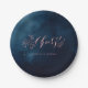 Estos elegantes y modernos platos de caligrafía animan platos de papel con un diseño rústico floral de suave color rosa negro sobre el fondo azul marino oscuro de la acuarela, ideal para el moderno boda rústico, bodas de primavera por la noche y otras celebraciones. Vea todas las piezas coincidentes de la colección a continuación.