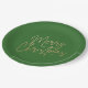 Plato De Papel La Feliz Navidad Dorada en Verde