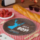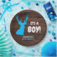 Personalizado / placas únicas personalizadas de papel para bebé con temática rústica de madera de ciervo de pato. Es una carta de Boy. Los colores azul y blanco. Placas editables de papel de plantilla - sólo tienes que añadir tu texto! ¡Obtén servilletas, invitaciones y pegatinas!