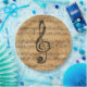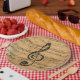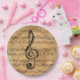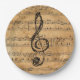 Platos de fiesta de papel con la imagen de una hoja de música vintage y una nota musical.