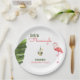 Si estás buscando un destino para el fin de semana de despedida de soltera, echa un vistazo a estos platos de papel de tema tropical Final Flamingle para Palm Springs Bach. En la colección puedes encontrar muchos regalos y productos de decoración para hacer tu celebración más divertida.