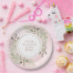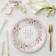 Con hojas de eucalipto botánico en un fondo acuático moteado de color rosa. Este elegante plato de papel puede ser personalizado con su propio mensaje. Perfecto para bodas, fiestas de compromiso, celebraciones de aniversario, duchas de novias, duchas para bebés, bautismo y reuniones de cumpleaños. Diseñado por Thisisnotme©