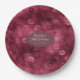 Platos de papel de textura metálica roja burgundy con patrón de labios besando.