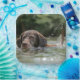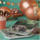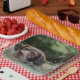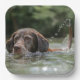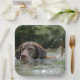Estas placas de papel tienen una foto de un laboratorio nadando en ellas.