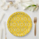fiesta de lacrosse de Guay o platos de eventos de equipo con arte xoxo de palo lax sobre fondo amarillo.