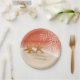 Este la diversión, placas de papel lindas, con playas ofrece un "par caprichoso de las estrellas de mar" en la playa. ¡Éntreme en contacto con para poner sus nombres en la arena! ¡Las invitaciones a juego del boda, ahorran las fechas, sobres, pegatinas, tarjetas de RSVP, placas de papel, prácticos de costa y los favores del imán están también disponibles! Para las preguntas o las peticiones del personalizado, contacto: cheryl@cheryldanielsart.com. Diseño por el © 2015 de Cheryl Daniels.