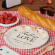 Plato De Papel Las hojas de otoño caen en el Boda enamorado