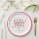 La tipografía JOY, única y caprichosa, ilustra platos de papel fiesta de Año Nuevo con cócteles de vacaciones y boughs de pino. Difunde alegría con este estilo festivo de fiesta. Brindis a un feliz 2023. ¡Hagan que esta festividad sea ALEGRE!