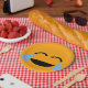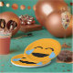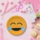 Estos bonitos platos de papel hacen de los fiestas perfectos para fiestas de cumpleaños con temática de emoji. Presenta un ilustracion de estilo dibujado a mano de una cara sonriente naranja. Esta emoji graciosa se está riendo tan fuerte que hay lágrimas en sus ojos.