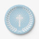Una placa de papel bonita para un acontecimiento religioso en azul con la frontera blanca del laurel y la cruz blanca con el starburst. Artículos de coordinación disponibles.