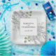 Estos elegantes platos de papel de moda boho le darán un toque especial a la recepción, a la cena de ensayo o a otras celebraciones de bodas. Cuentan con un diseño acuático pintado a mano con sus nombres y la fecha boda dentro de un marco blanco sobre un fondo azul polvoriento y mareado rodeado de flores de lavanda, hojas de eucalipto y follaje. Rústico y bello estos platos seguramente les gustará.