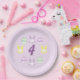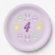 4° cumpleaños de Pascua con conejos y huevos de Pascua en tonos violeta, amarillo y verde