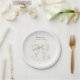 Diseño simple de plato de papel con lazo blanco para duchas de novia.