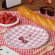 Plato De Papel Lazo femenino bonito de gingham de cuadros rosa ce