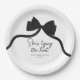 Organice una despedida de soltera inolvidable con estos elegantes platos de papel "She's Tying the Knot" que presentan un diseño de lazo negro elegante. Perfectos para un tema moderno en blanco y negro, estos platos de papel combinan sofisticación chic con encanto atemporal.