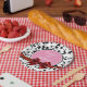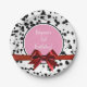 Plato De Papel Lazo Rojo Rosa Puntos Negros de Dálmata Fiesta de