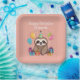 Plato De Papel Leche Adorable Feliz Cumpleaños Rosa Personalizado