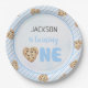 Plato De Papel Leche y galletas azul Fiesta de primer cumpleaños
