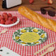 Para una ducha nupcial con tema de limón. Alrededor del círculo amarillo hay limones, hojas verdes de limón y algunas pequeñas flores blancas de limón. El texto en el círculo amarillo es verde. Incluye el nombre, la ocasión y la fecha. El nombre está escrito en un guión caligráfico elegante. Las ramas de limoneros son de antiguos ilustraciones botánicos de Antonio Targioni Tozzetti (1785-1856), ahora de dominio público.