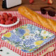 Plato De Papel Lemon Mediterráneo Tile Azul y amarillo floral