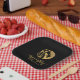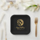 Sencillo y poderoso, este diseño de placa de papel de cumpleaños presenta un ilustracion de perfil de león en oro sobre un fondo negro contrastante. Hace un bonito logo para celebrar un cumpleaños de leo. Personalice la plantilla de texto con el nombre del invitado de honor.