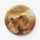 Estas placas de papel tienen dos leones relajantes retratados sobre ellas.