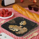 Placa de papel leopardo de hojas de oro negras. Mira el resto de esta colección de cumpleaños de safari.